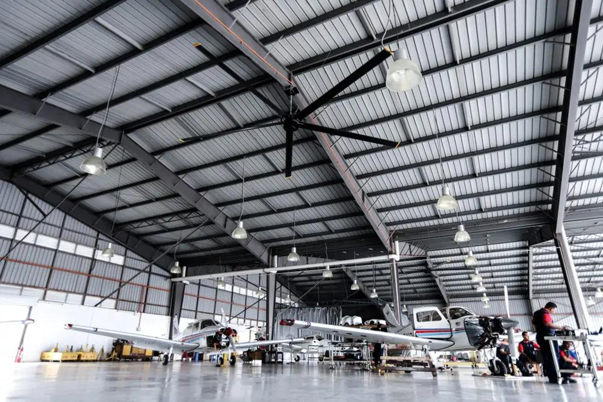 Hangars are vast, high-ceiling spaces where aircraft maintenance, inspections, and assembly take place. In such environments, heat, humidity, and stagnant air can hinder worker comfort, reduce productivity, and compromise safety. For Malaysian Flying Academy, two massive 24-foot ultra-large energy-saving HVLS fans, powered by PMSM technology, are playing a pivotal role in maintaining a cool, comfortable, and safer workspace for engineers and technicians during maintenance tasks.