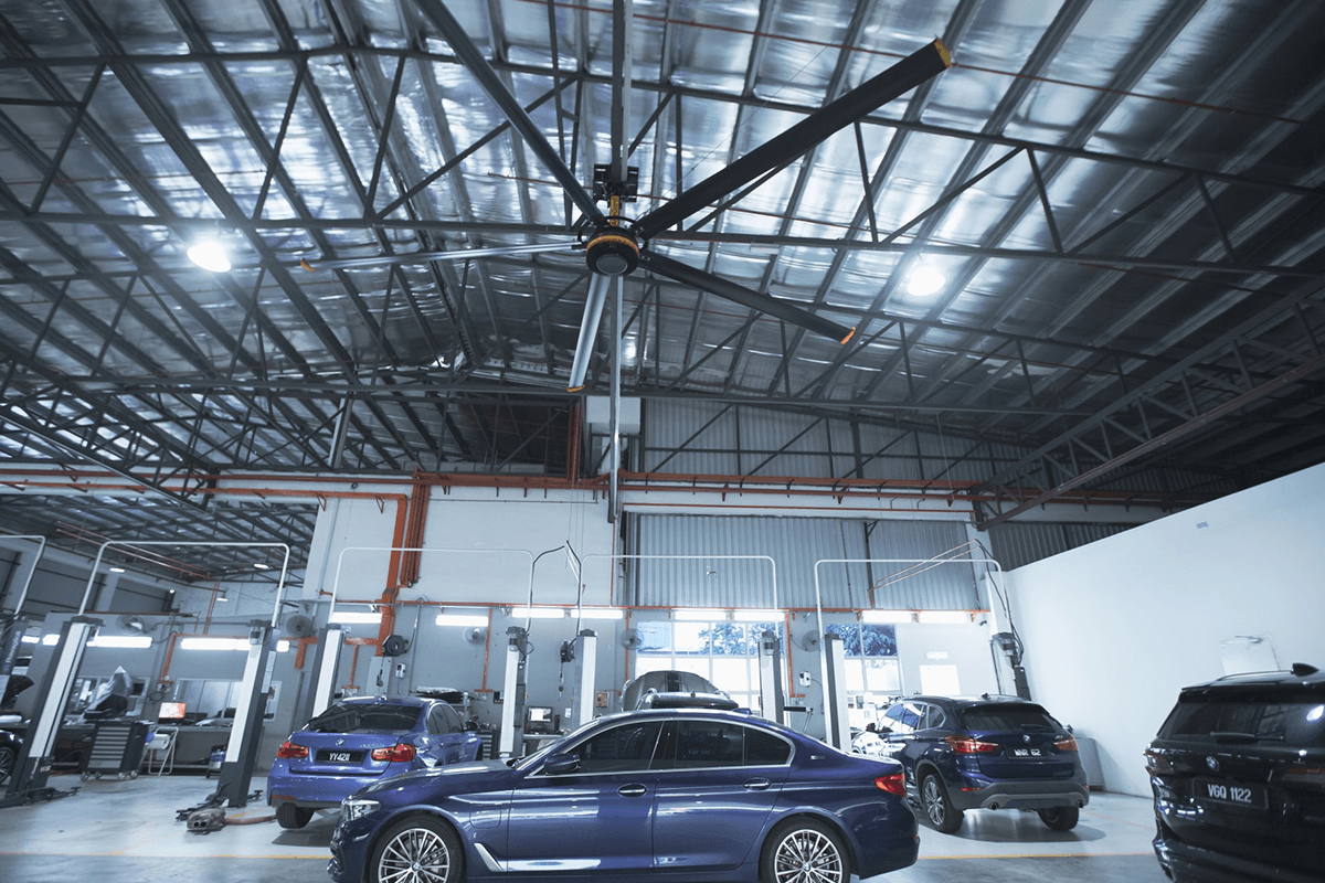 BMW, a renowned symbol of luxury and precision engineering, continues to invest in enhancing the comfort and productivity of its workshops in Malaysia. In a move that underscores BMW's commitment to innovation and excellence, the automaker has chosen Kale Fans' EURUS III HVLS Fan to transform its workshop environment into a more efficient and comfortable space for both staff and customers.